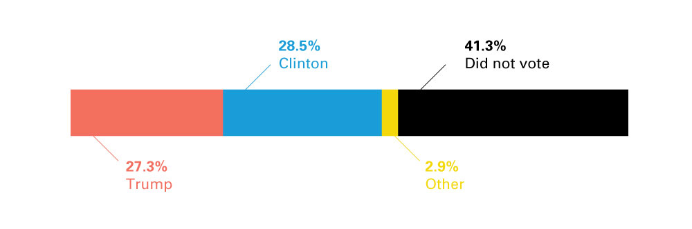 In 2016, nearly 100 million eligible Americans did not cast a vote for president, representing 43% of the eligible voting-age population. They represent a sizeable minority whose voice is not heard in our representative democracy. Most of our attention, in politics and in research, tends to fall almost exclusively on “likely” voters perceived to make the most difference in the outcome. As a result, relatively little is known about those with a history of non-voting. Yet their non-participation is a key feature of our democracy, and raises important questions about the basic health of a participatory society.