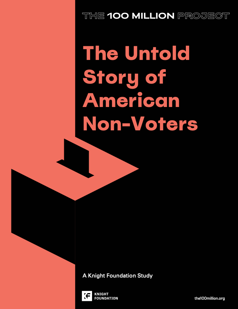 The John S. and James L. Knight Foundation published this report as part of the 100 Million project. The Foundation does not endorse any political party or candidate. It supports all efforts to educate non-voting Americans about the issues facing their communities and the nation and exercise the right to vote for candidates and initiatives of their choice.