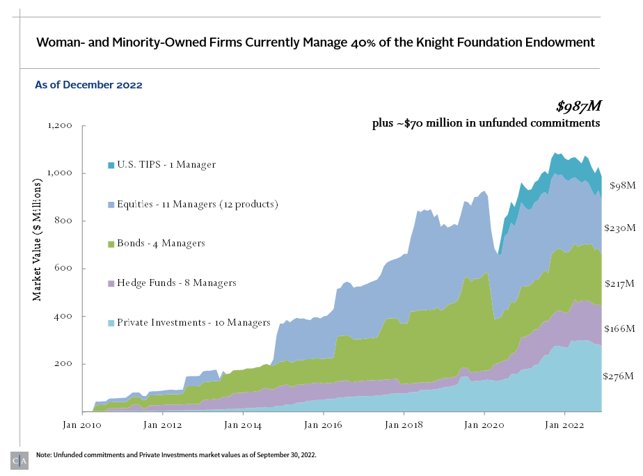 Woman- and minority-owned firms currently manage 37% of the Knight Foundation endowment