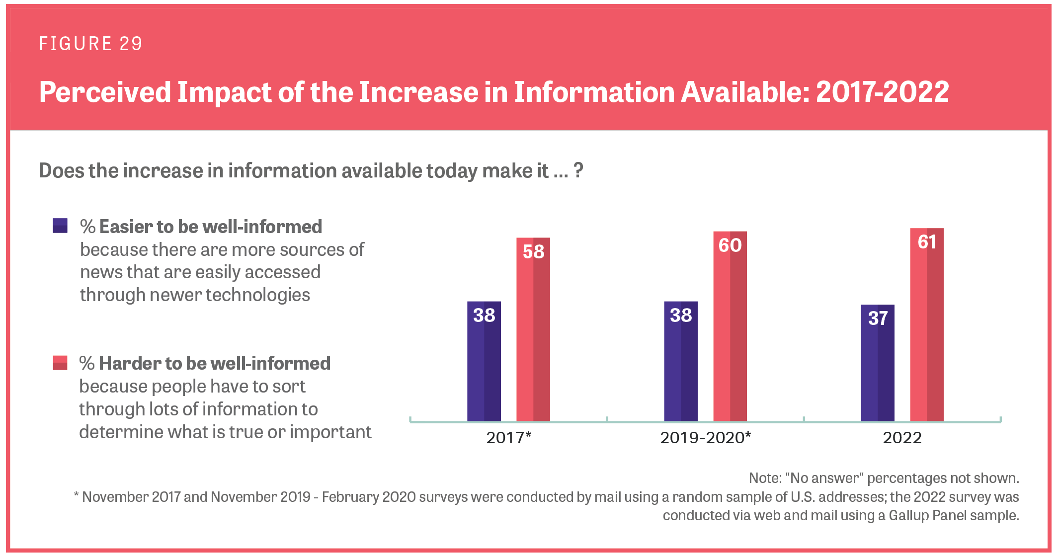 - Sixty-one percent say the increase in information today makes it harder to be well-informed.