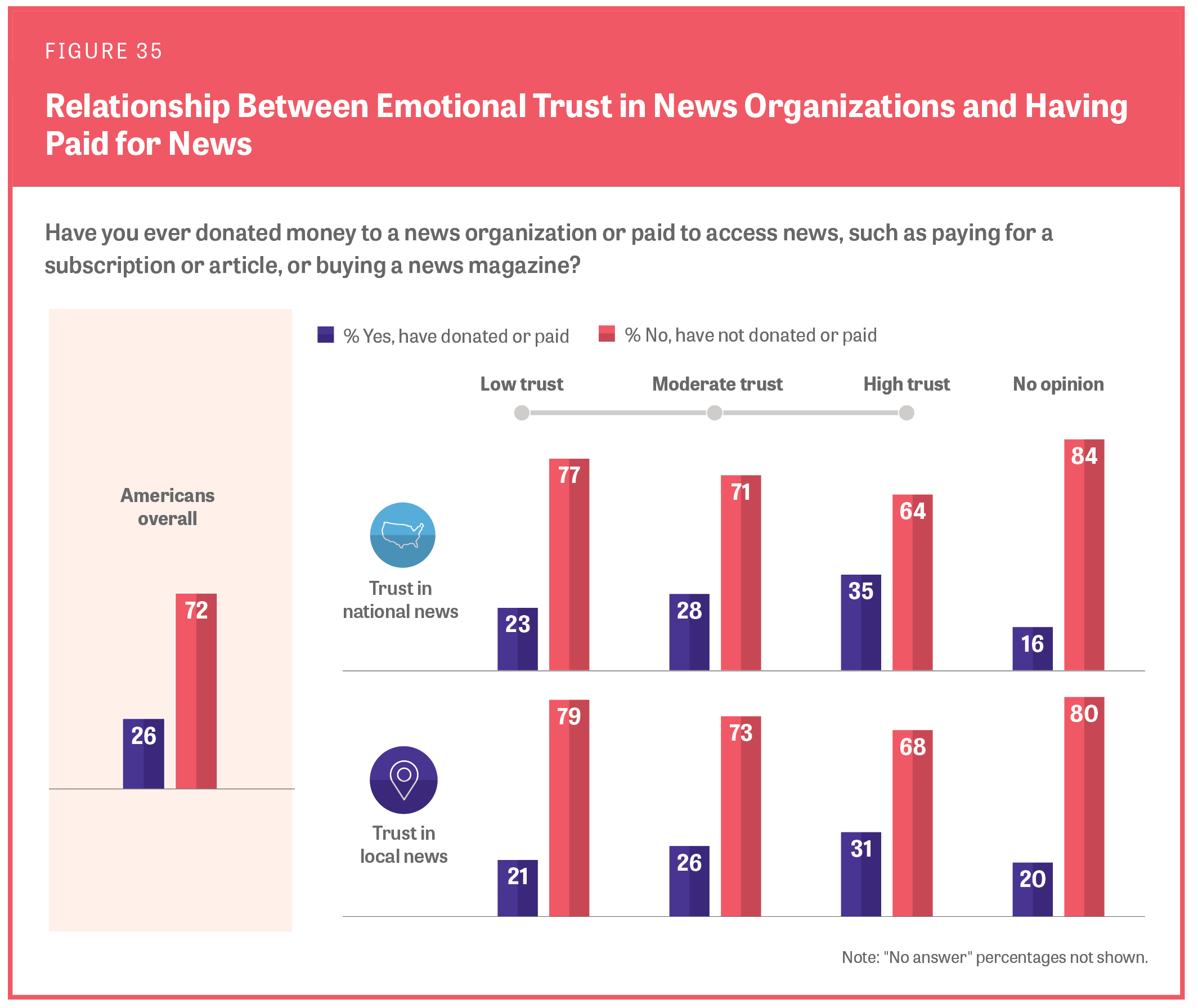 - Thirty-five percent of Americans with high emotional trust in national news have paid for news in the past, and 25% say they would pay for news in the future.