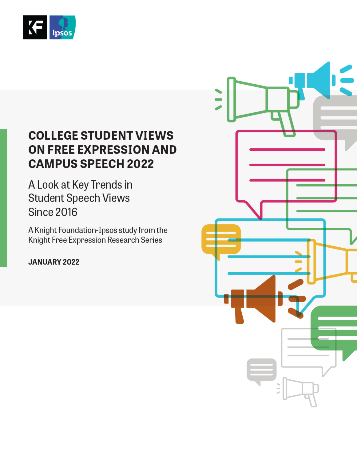 The “Knight-Ipsos College Student Views on Free Expression and Campus Speech” report is the fourth in a series of Knight Foundation reports measuring college student attitudes toward speech and the First Amendment since 2016. For this report, Knight Foundation commissioned Ipsos to conduct a survey with a nationally representative sample of over 1,000 college students ages 18-24 enrolled in all types of higher education institutions, along with 4,000 American adults, offering insight into how college students’ views on free speech compare with those of the general public. In addition to the past Knight-Gallup campus speech surveys (2016, 2017, 2019), Knight has studied free speech views among high school students since 2004. Trends in college student attitudes are included throughout this report.